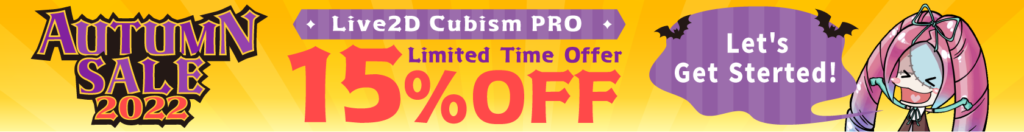 Special Offer! 15% OFF Cubism PRO ! Live2D Autumn Sale starts now through Thursday, Nov 3, 2022!